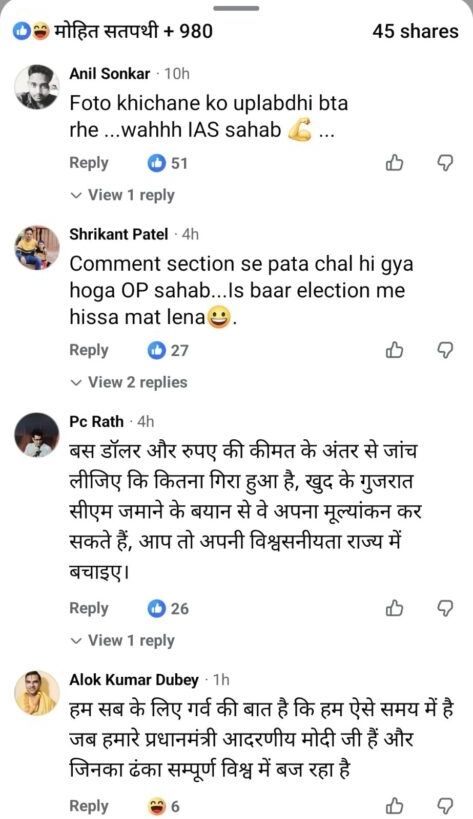 O P चौधरी की Facebook post पर कटा बवाल.. क्या चौधरी जी की ज़मीन खिसक रही है..!क्या होता है जब followers ही बनें आलोचक!OP चौधरी के इस फेसबुक पोस्ट के कमेन्ट सेक्शन में मचा घमासान..ख़बर के अंदर पढ़ें कुछेक समर्थकों के नाम-शब्दशः नसीहत भरे कमेंट्स स्क्रीन शॉट सहित..