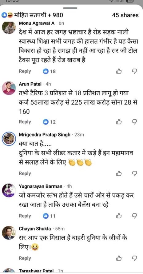 कुछ कमेंट्स में “फोटो खिंचवाने की उपलब्धि”, “जमीनी हकीकत से दूरी”, “राज्य की हालत पर ध्यान दें” जैसे वाक्य यह संकेत देते हैं कि भावनात्मक समर्थन में दरार पड़ रही है।वहीँ कई टिप्पणियों में राष्ट्रीय और अंतरराष्ट्रीय छवि की बातों के मुकाबले स्थानीय मुद्दों महंगाई, सड़क, स्वास्थ्य, शिक्षा, टैक्स और कर्ज को प्राथमिकता देने की मांग दिखती है।